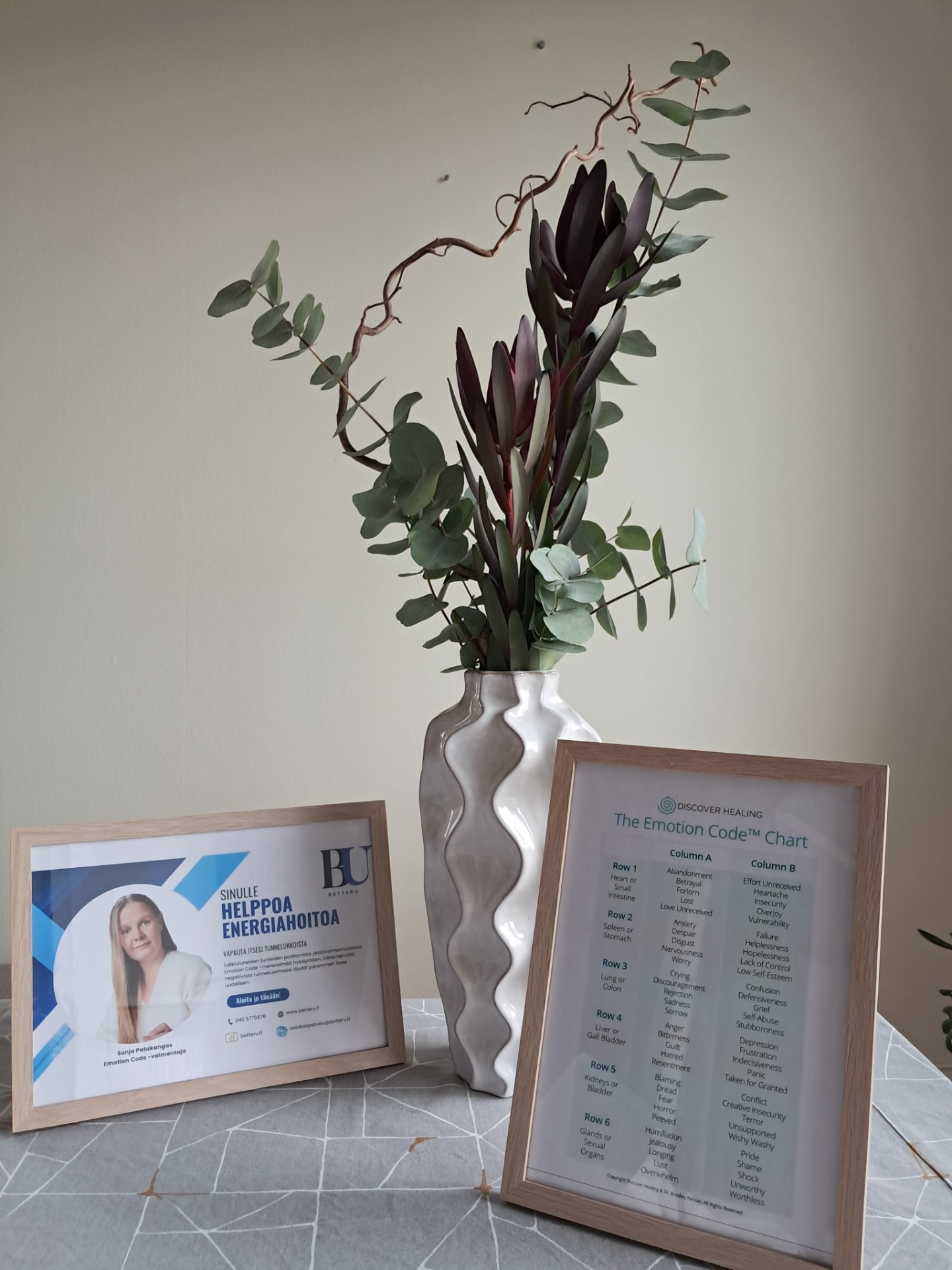 Oletko väsynyt, ärtynyt, surullinen, alakuloinen tai muuten yleisesti tyytymätön elämäntilanteeseesi? Tuntuuko sinusta, että elämäsi ei kulje haluamaasi suuntaan? Toimitko tilanteissa vastoin sitä, mitä oikeasti haluaisit? Vaivaako sinua jokin asia, jonka haluaisit jo jättää taaksesi? Tässä muutamia esimerkkejä käsittelemistäni aiheista muiden tai itseni kanssa. Kyse voi olla siitä, että kehoosi lukkiutuneet tunnetilat haittaavat kehosi tasapainoa ja energiat eivät virtaa kehossasi oikein. Käytän työssäni Yhdysvaltalaisen Dr. Bradley Nelsonin menetelmää Emotion Code, jolla poistetaan kehon energioita haittaavia lukkiutuneita tunnetiloja. Menetelmä perustuu ajatukseen, että ihminen on pohjimmiltaan puhdasta energiaa ja lukkiutuneet negatiiviset tunteet ovat kehosi energioihin pesiytynyttä negatiivista energiaa. Ne haittaavat kehosi energioiden virtausta ja estävät sitä toimimasta parhaalla mahdollisella tavalla. Kun energiat eivät virtaa tehokkaasti esimerkikiksi kehon oma puolustusjärjestelmä ei pysty toimimaan tehokkaasti ja ihminen altistuu yhä enemmän sitä uhkaaville tekijöille.
